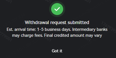 After entering the correct verification code, click "Submit". The withdrawal will then appear in the "Recent Withdrawals" Records at the bottom of the page.
