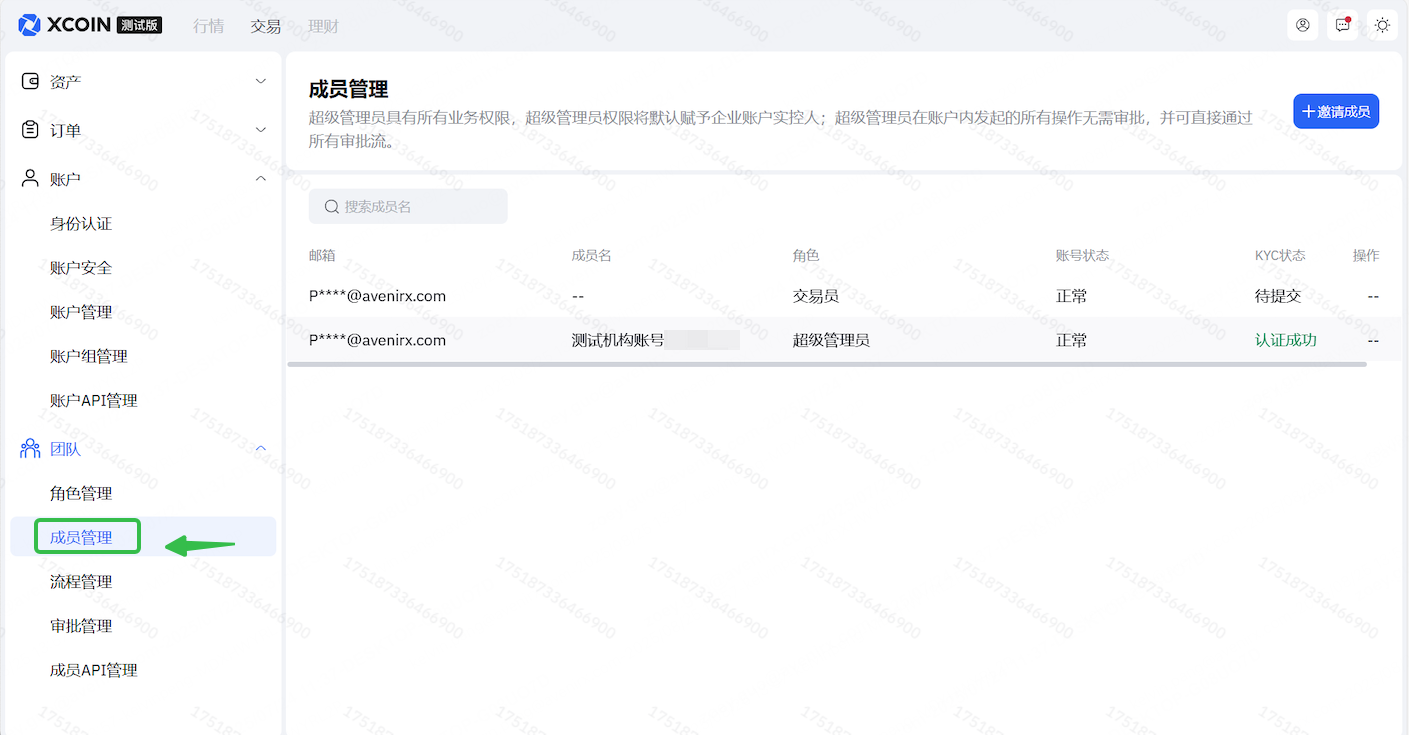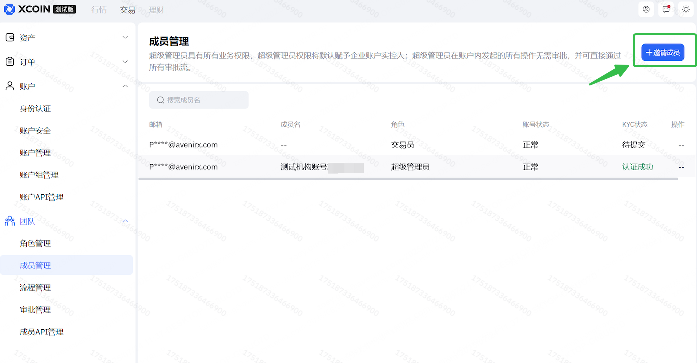 - 进入成员管理页面,点击右上角“邀请成员”可要求企业成员加入: