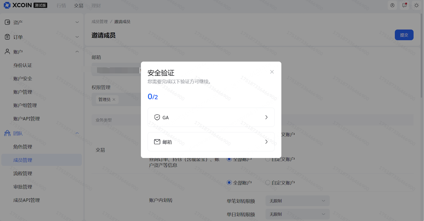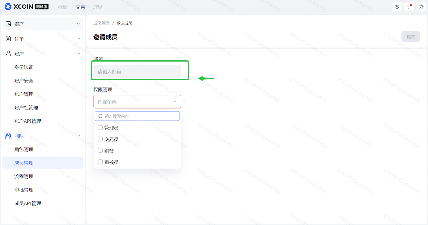 - 在“邮箱”处输入成员邮箱,在“权限管理”处可为成员选择对应角色: