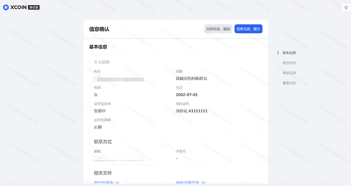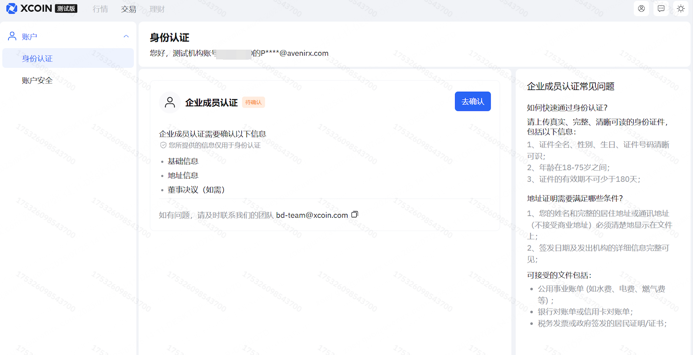 - 审核通过后,账号页面会如图显示,请点击“去确认”进行信息确认: