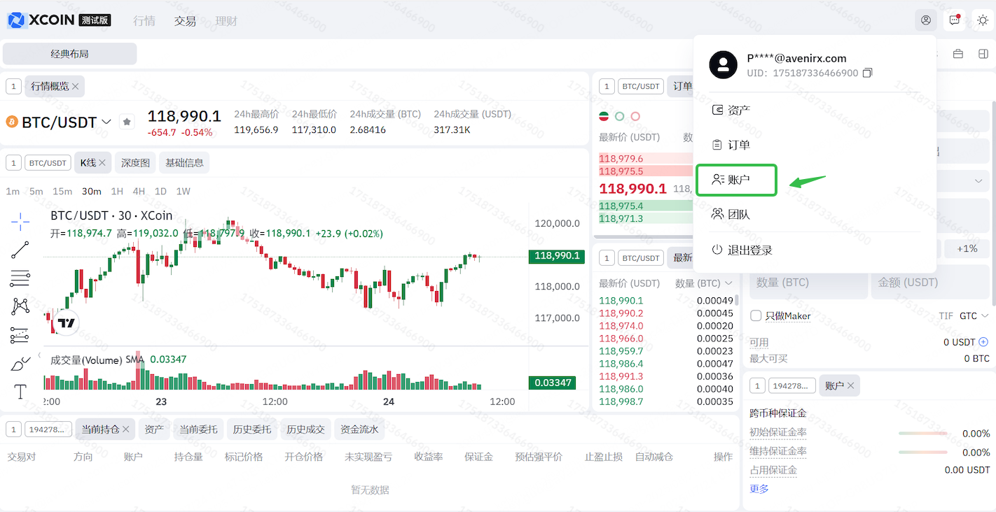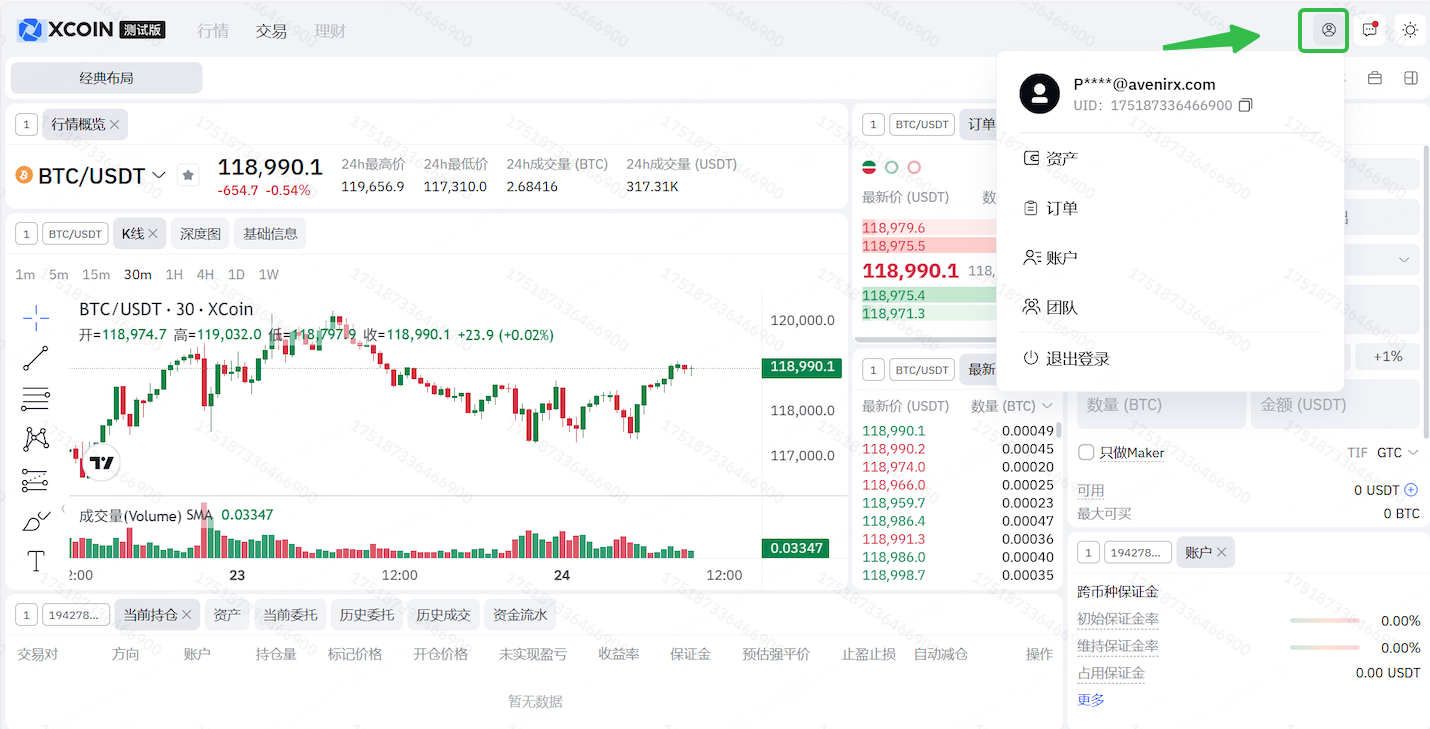- 将鼠标移到右上角人物图标(圆圈内图标),即可显示账户基础信息(方框内容):