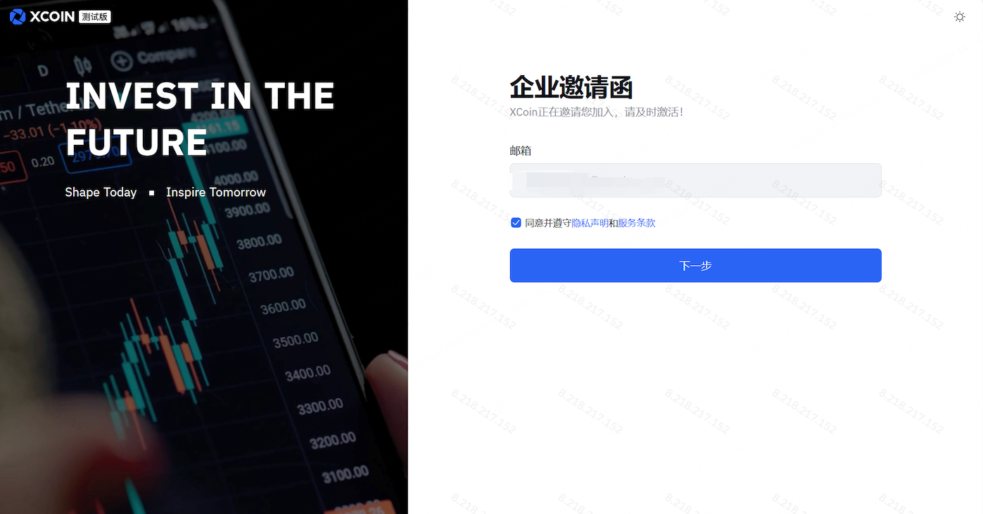 - 被邀请成员可点击激活链接进入如下页面,核对邮箱信息无误后,点击同意进入下一步: