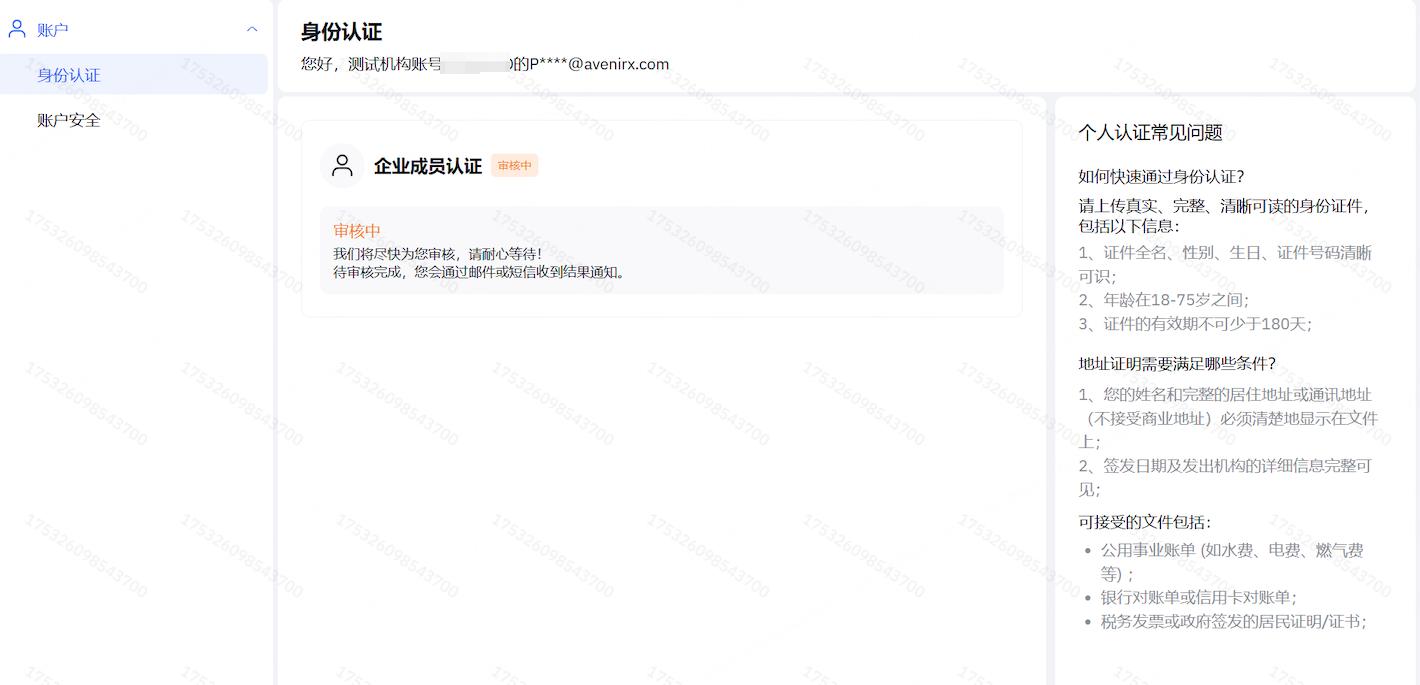 - 提交认证后,账号页面会如图显示,请等待审核完成:
