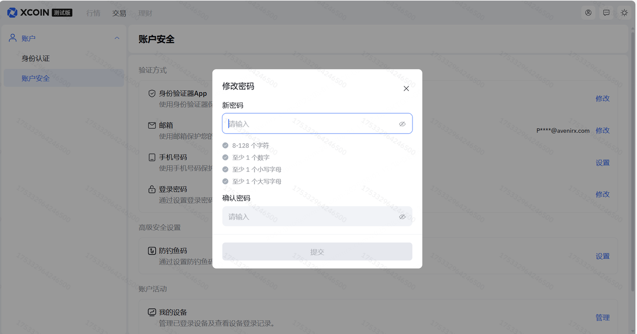 注意:为了保护您的帐户安全,重置密码后,24小时内无法使用提现功能。