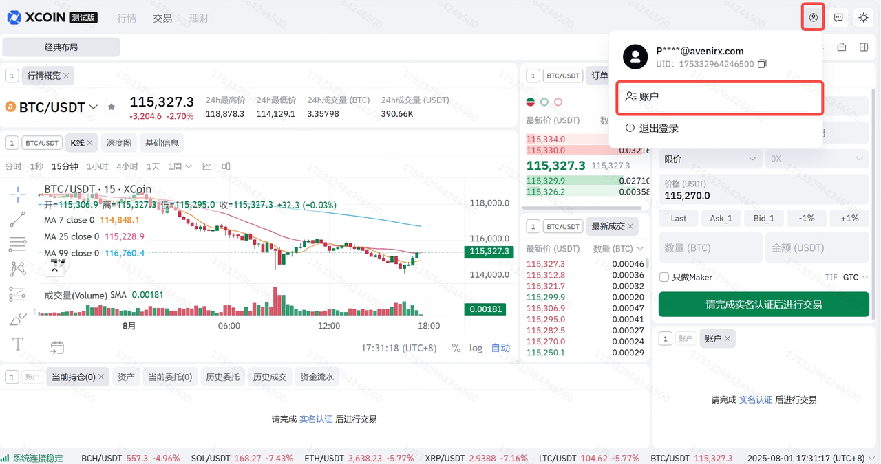 Web端:将滑鼠鼠标移动到右上角的【帐户】图示。