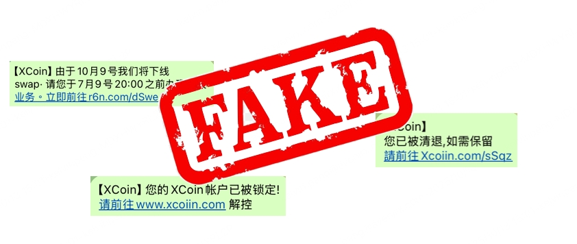 诈骗分子伪装成XCoin工作人员,制作与官方网站高度相似的钓鱼网站,并通过短信、邮件或社交媒体散布虚假信息,声称“账户需升级”、“资金异常需验证”或“转为国际用户”等,诱导用户点击伪造链接或扫描二维码。用户一旦在钓鱼网站输入账号密码、短信验证码或谷歌验证码,账户信息将被窃取,数字资产也可能被迅速转走。